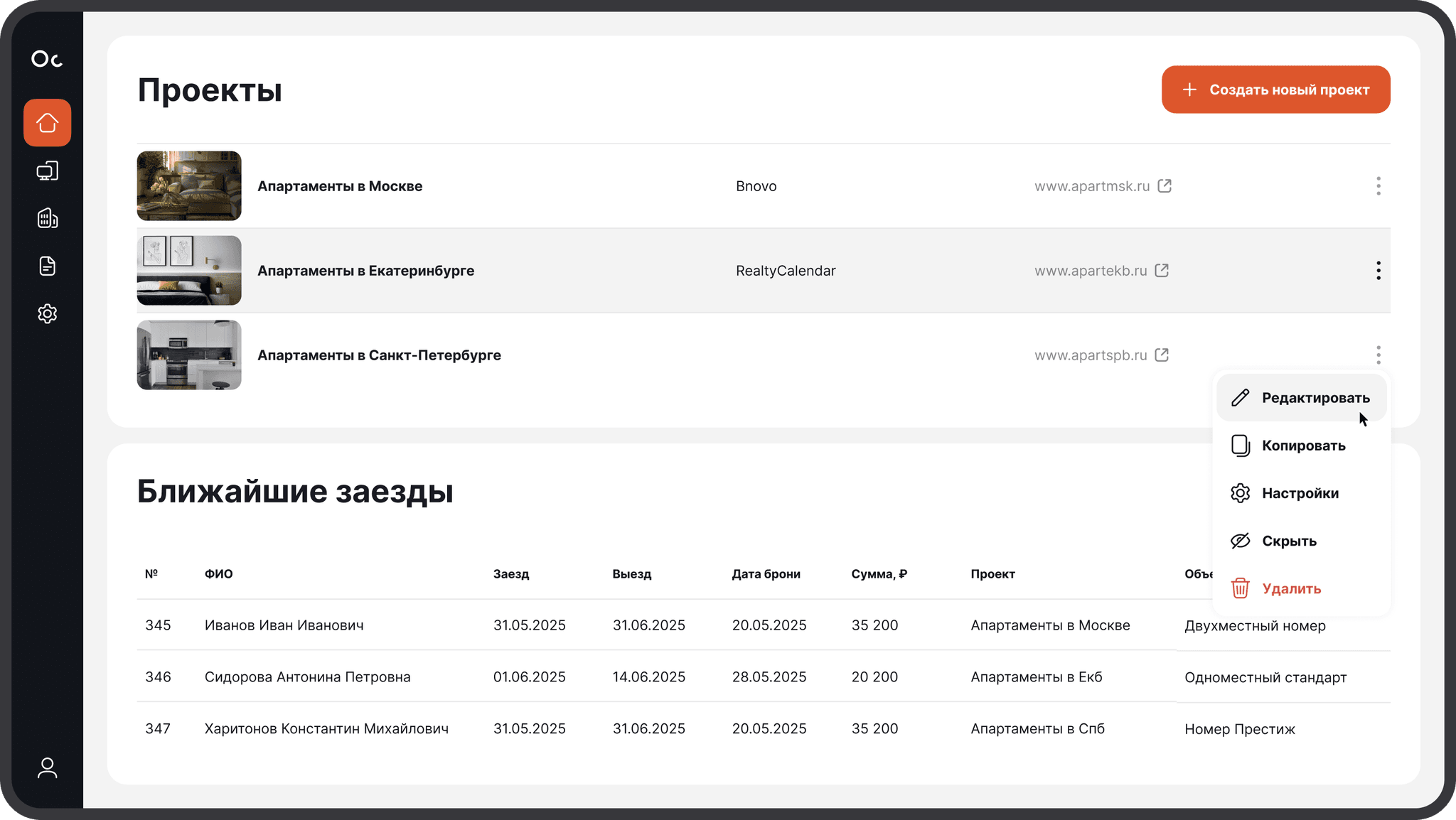 Если вы уже пользуетесь Realty или Bnovo, мы импортируем данные автоматически