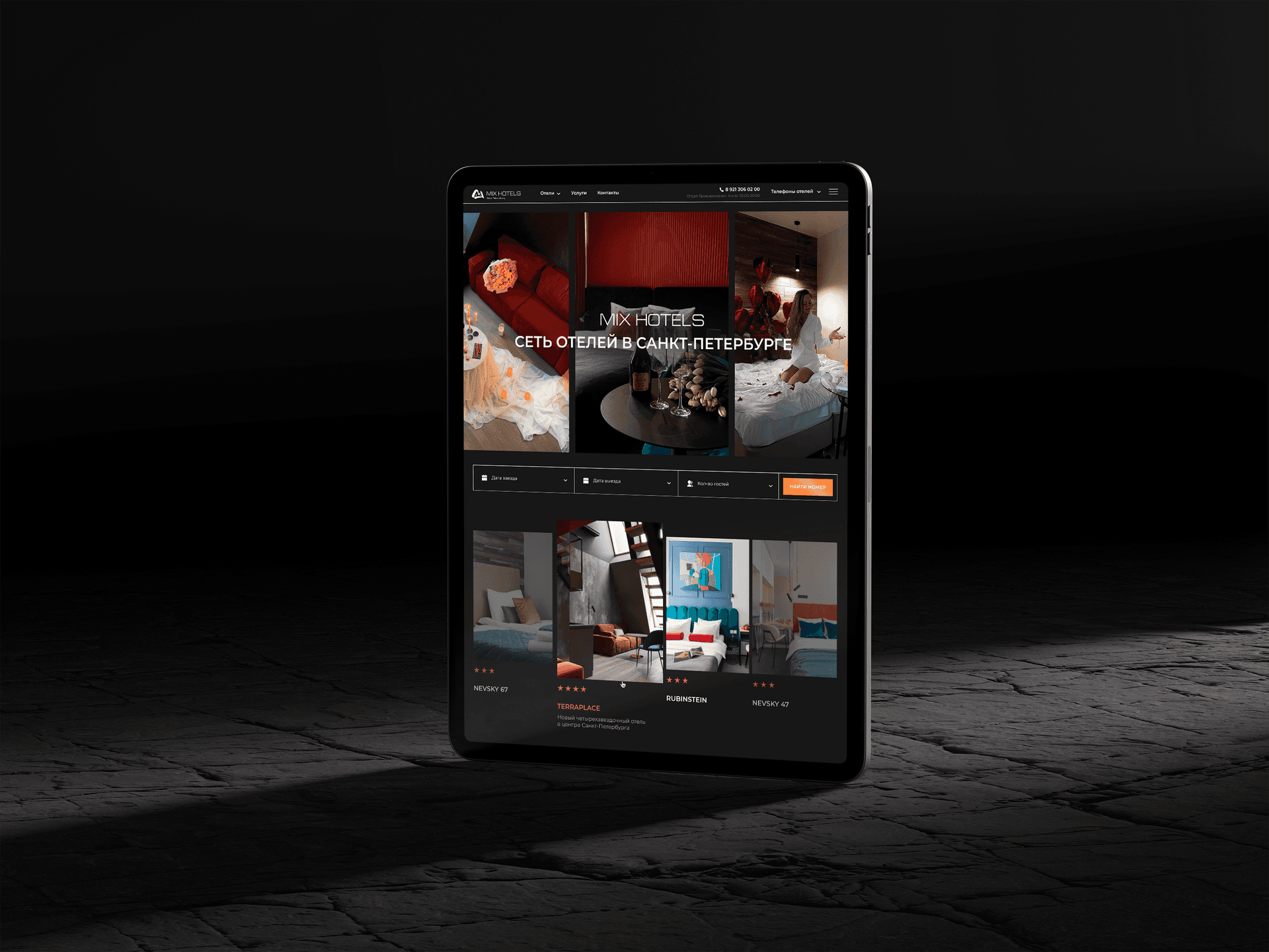 Разработали сайт для сети отелей MixHotels с удобной системой бронирования. Благодаря полной интеграции с PMS-системой, на сайте отображаются актуальные цены, доступность номеров и все доступные тарифы — от стандартных до специальных предложений.
